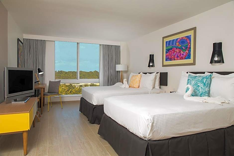 This double room features 1 king-size bed or 2 double beds, water views of the harbor and Paradise Island, complimentary standard WiFi and mini-fridge. Rooms are located on floors 8-12.